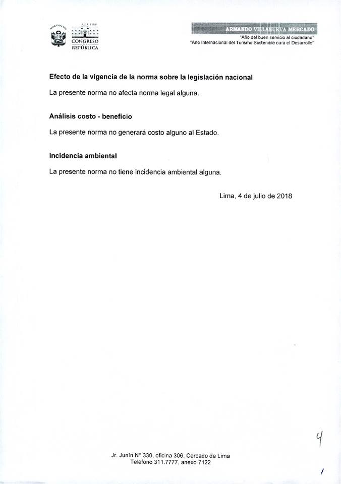 Membres du Congrès du Groupe Parlementaire d’ACCION POPULAIRE qui souscrivent, à l’initiative du Député ARMANDO VILLANUEVA MERCADO, exerçant leur droit d’initiative législative conféré à l’article 107 de la Constitution Politique du Pérou, et conformément aux dispositions de l’Article 76 du Règlement du Congrès de la République, présente le projet de loi suivant: