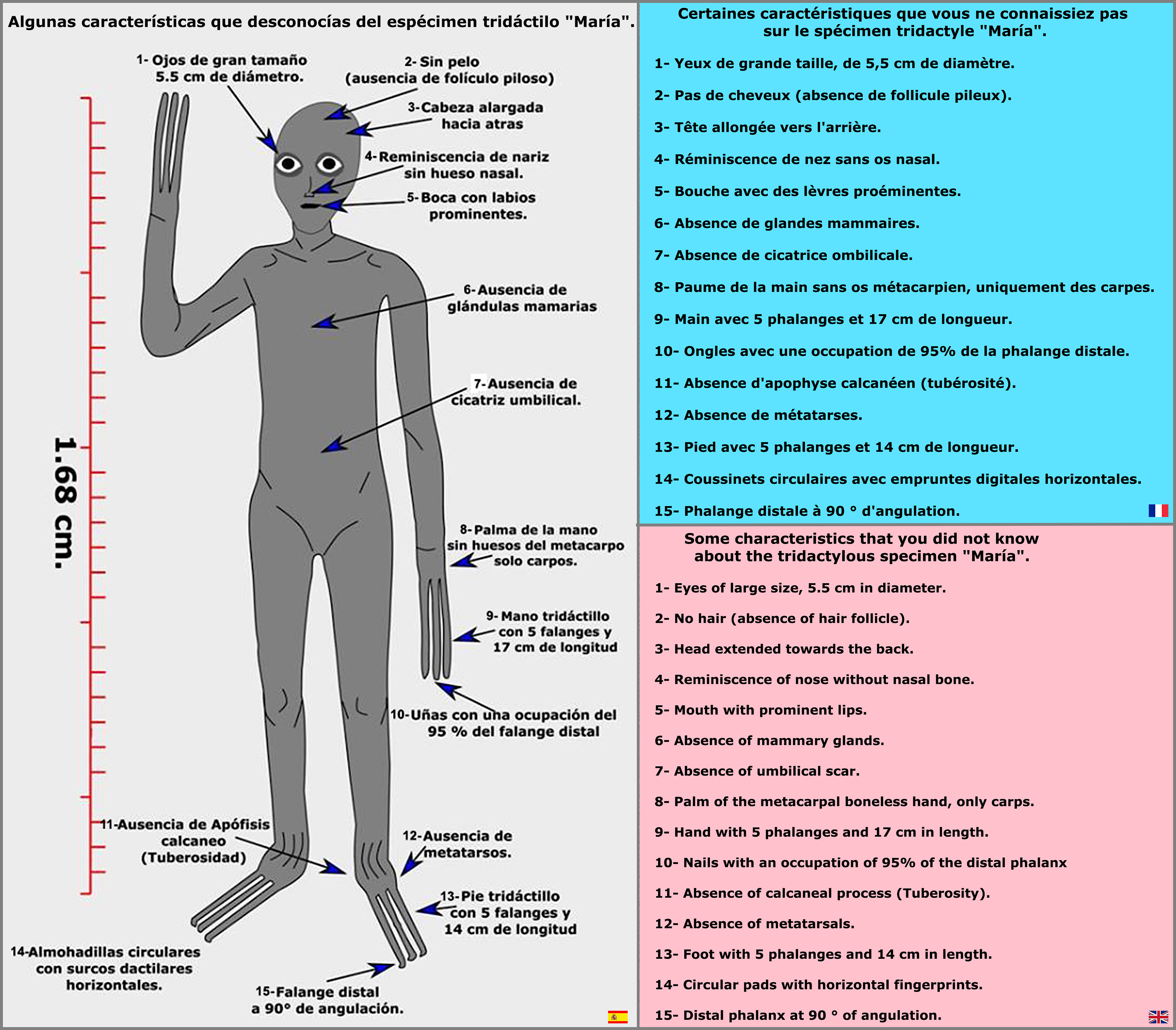 "Après avoir vu les résultats des analyses ADN, je dirais que les êtres dont les échantillons ont été pris, et dont l'ADN a été analysée, n'appartiennent à aucune origine terrestre connue. Ils ne correspondent avec aucune espèce sur Terre. Il n’y a aucun signe que cela soit un faux ». D’après son opinion basée sur les résultats ADN, Maria est une authentique relique et anomalie d’une origine inconnue.