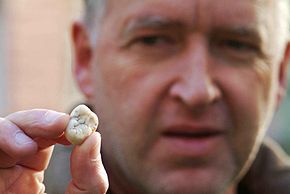 Le Professeur Friedemann Schrenk avec la dent molaire de