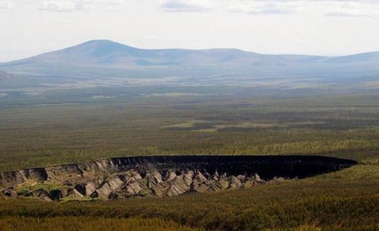 1 600 mètres de longueur (un mile) et plus de 120 mètres de profondeur (400 pieds) : c’est l’impressionnante taille du gigantesque cratère qui se développe en Sibérie occidentale, près de la petite ville de Batagaï. Situé dans la république de Sakha, en Russie, il s’agit du plus grand trou repéré en Sibérie. Mais pas le seul. En 2014, sept nouveaux cratères ont été découverts dans la péninsule de Yamal, nom qui signifie « la fin du monde ». Au total, on dénombre une dizaine de cratères qui ont fait leur apparition dans les terres sibériennes, s’étendant sur 13 millions de kilomètres carrés et très peu peuplées (trois habitants au kilomètre carré).