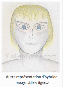 Alors que l’entité plus grande, inexpressive et d’aspect féminine, était toujours au-dessus sa tête, Credo vit arriver une créature grande et grosse en métal. Une sorte de robot sans bouche et sans nez, avec des yeux brillants. Puis il vit arriver une créature féminine bouffie, avec un corps rose, humain, au poil blond, avec des yeux bleus bridés, et des cheveux qui ressemblaient à du nylon. Les pommettes étaient hautes, les lèvres charnues, le menton pointu. Mais cette créature était très mal proportionnée, les seins mal placés, le corps gras, les jambes trop courtes… etc. Et c’est alors qu’elle est accouplée avec Credo, il dit que l’expérience était traumatique.