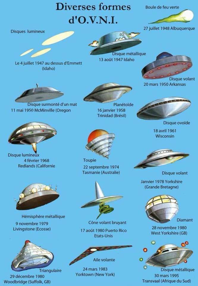 Les types d'ovnis répertoriés