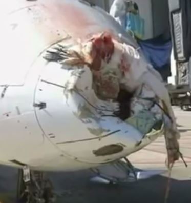 il subit un choc frontal sur le nez et le radome à 1500 m d'altitude. L'explication officielle parle d'un drone...